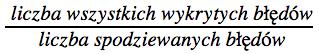 Pokrycie błędów – metryka sprawdzająca planowe pojawianie się błędów aplikacji. Stosunek liczby wszystkich błędów wykrytych podczas testów do liczby błędów, które miały wystąpić zgodnie z założeniami.