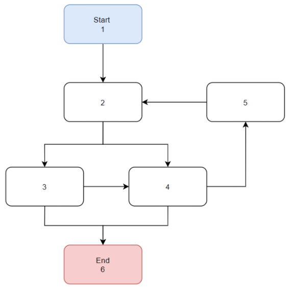- 1 -> 2 -> 3 -> 4 -> 5 -> 2 -> 3 -> 4 -> 6